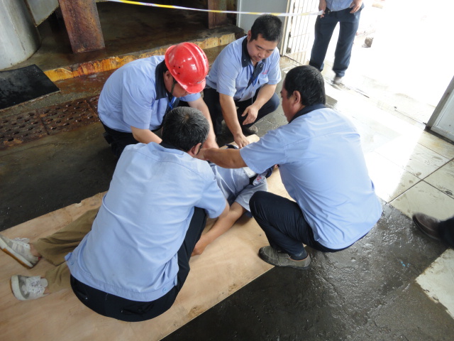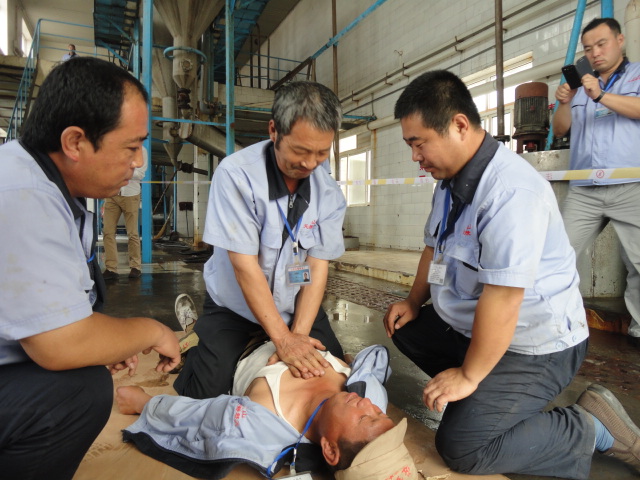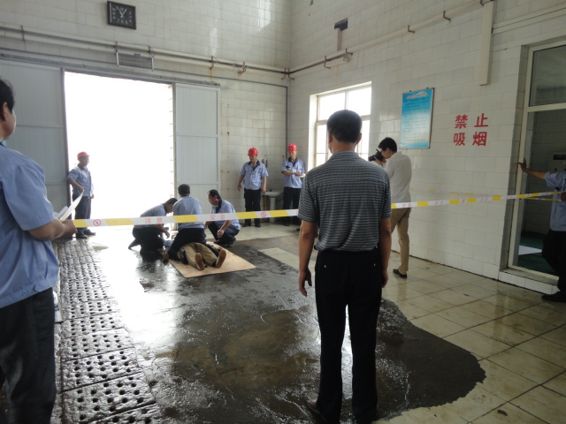 為提高全員安全生產(chǎn)意識,增強(qiáng)員工在緊急情況下的應(yīng)變處理能力、自我防護(hù)能力,使每個(gè)員工都能掌握一定的消防安全知識和觸電先期救援工作,消除火災(zāi)隱患,學(xué)習(xí)有關(guān)防火、觸電急救的相關(guān)知識和消防器材的使用方法,掌握消防逃生技能及注意事項(xiàng)等,我廠以“安全生產(chǎn)月”為契機(jī),圍繞“全員關(guān)注消防,生命至高無上”,于2013618日上午開展了火災(zāi)應(yīng)急和觸電救援演練,縣鹽務(wù)局行管處張?zhí)庨L等人來指導(dǎo)觀摩。